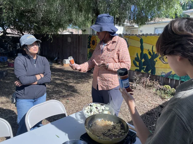 OVGG doesn’t work alone. Its goals also entail collaborating with local community leaders and organizations to spread its efforts relating to community-centered projects and increased access to green spaces and fresh produce even more. Berry Good Food Foundations is one of those orgs and, with OVGG, are providing workshops on how to grow in urban spaces and plots for local communities looking for guidance on growing culturally and climate-relevant crops. This project not only created a permanent gathering and learning space at OVGG for Southeast San Diego CBOs, partners, and community members to connect with resources and environmentally focused organizations, but it is also a space where several community-based organizations, refugee, and immigrant groups who want to start their own small businesses, feed their families, or promote a healthier lifestyle can do so.